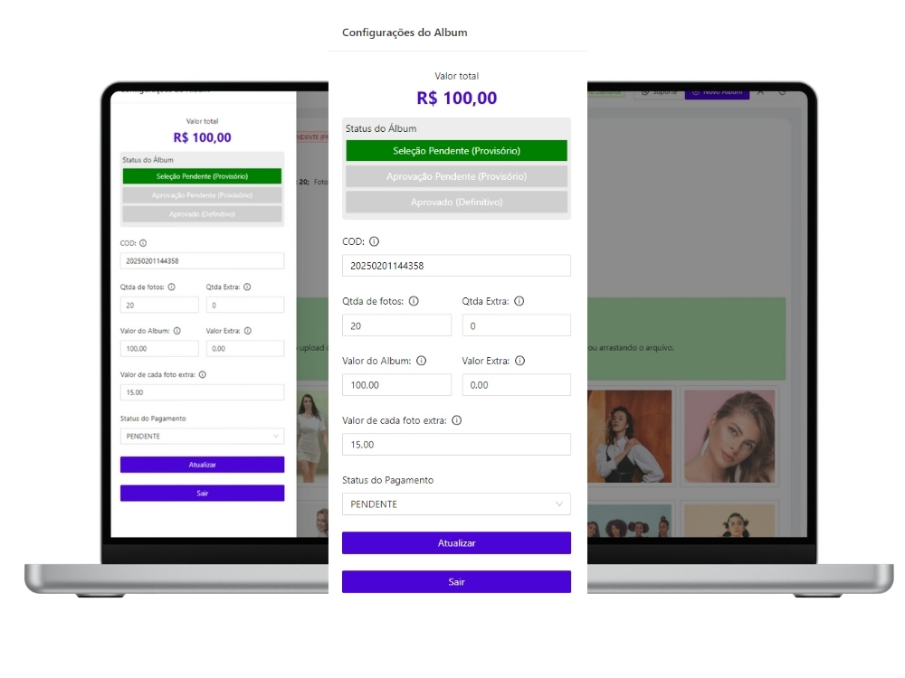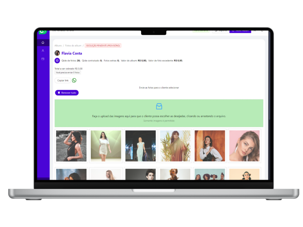 Organize todos os seus álbuns em um só lugar, de maneira intuitiva e sem complicações. Visualize, edite e envie para aprovação com apenas alguns cliques, garantindo um fluxo de trabalho ágil e eficiente.